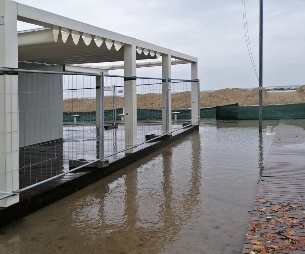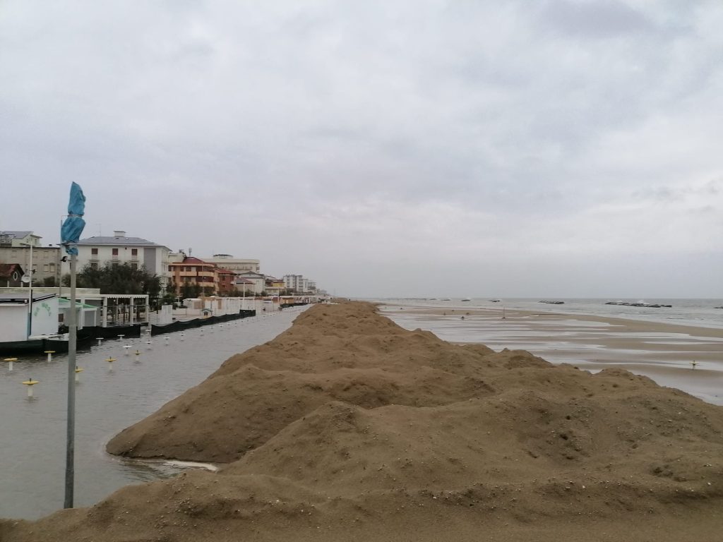 Per difendere la spiaggia i balneari non scavano trincee, ma costruiscono argini di sabbia che dovrebbero opporsi alle onde delle mareggiate invernali. Ma se si apre un nuovo fronte da terra, che succede? Lo abbiamo visto il 19 ottobre scorso lungo la costa romagnola, in particolare su un tratto di oltre un chilometro a Bellaria Igea Marina: l’acqua piovuta sul centro abitato, invece che defluire verso il mare, è stata trattenuta da questi argini formando una lunga laguna costiera. Lidi e bar sono stati allagati, con danni piuttosto rilevanti.
