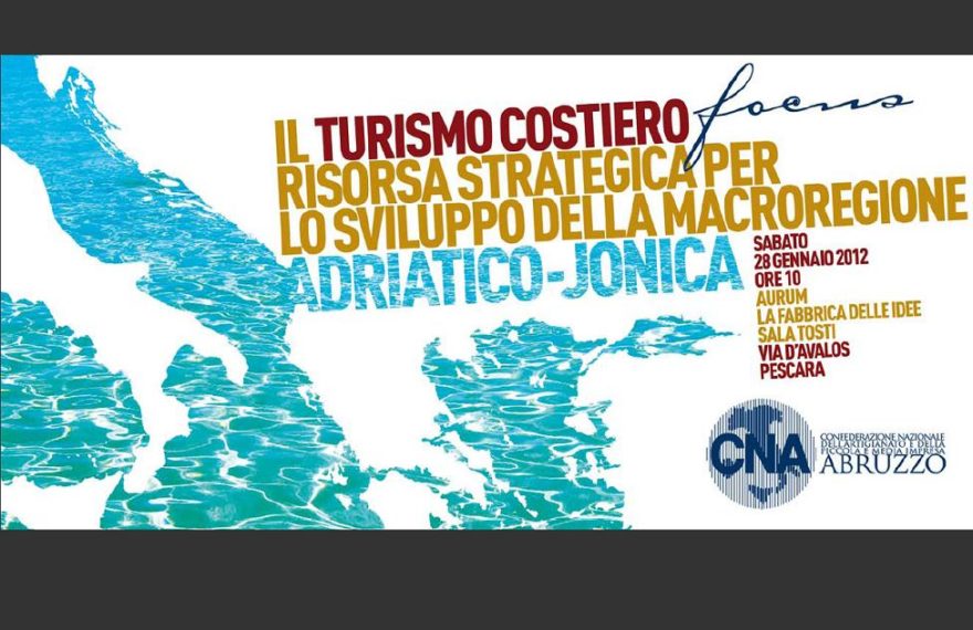 Si terrà sabato 28 gennaio 2012 alle ore 10, presso la Sala Tosti dell’aurum La fabbrica delle idee di Pescara (via d’Avalos), il convegno "Il turismo costiero risorsa strategica per lo sviluppo della macroregione adriatico-jonica", organizzato da CNA Abruzzo. Al centro dei lavori, le sfide e le opportunità che si presentano alle imprese