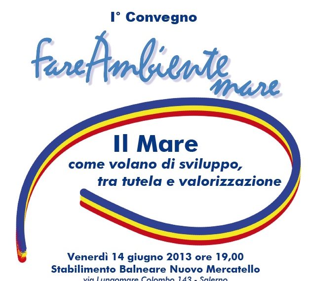 Si terrà venerdì 14 giugno alle ore 19, presso lo stabilimento balneare Nuovo Mercatello di Salerno (lungomare Colombo 143), la prima edizione del convegno "Il mare come volano di sviluppo, fra tutela e valorizzazione", organizzato dall’associazione ambientalista FareAmbiente. Interverranno al convegno come relatori: Vincenzo Pepe (presidente