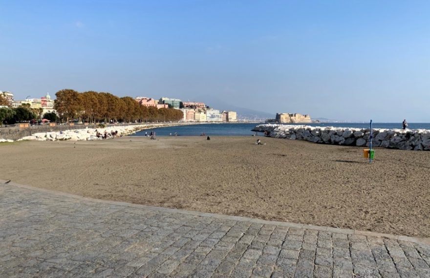 Qualcuno l’ha definita l’ultima spiaggia dei napoletani, perché se “il mare non bagna Napoli”, come scriveva Anna Maria Ortese negli anni ’50, è altrettanto vero che nel centro cittadino, a pochi metri da Castel dell’Ovo e con vista sul Vesuvio, c’è una piccola oasi dove napoletani e turisti possono trovare refrigerio e concedersi