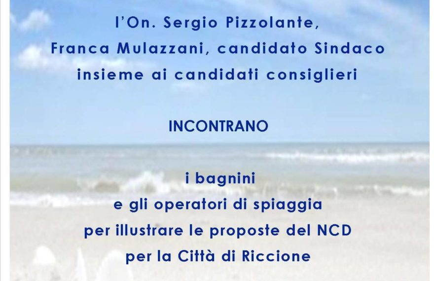 Il Nuovo Centrodestra di Riccione incontra gli operatori di spiaggia e gli imprenditori balneari riccionesi per raccogliere le loro istanze e proporre idee e risposte per il rilancio del settore. Argomento dell’incontro è "Spiaggia e turismo". L’appuntamento è martedì 20 maggio alle ore 20.45, alla biblioteca comunale di