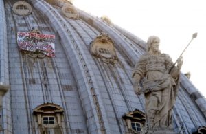 (ore 18.51) – L’imprenditore balneare Marcello Di Finizio è di nuovo sulla basilica di San Pietro a Città del Vaticano. Ma questa volta non in cima