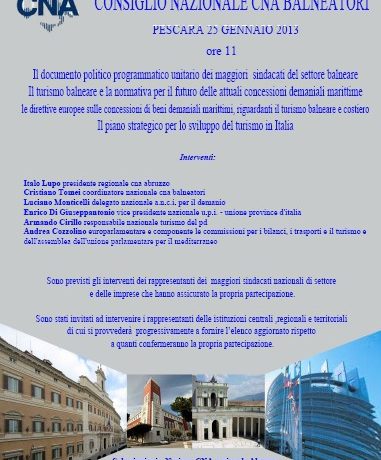 Il consiglio nazionale di Cna Balneatori,che si terrà venerdì 25 gennaio alle ore 11 (vedi notizia precedente), evidenzia gli aspetti più significativi degli ultimi quattro mesi di attività