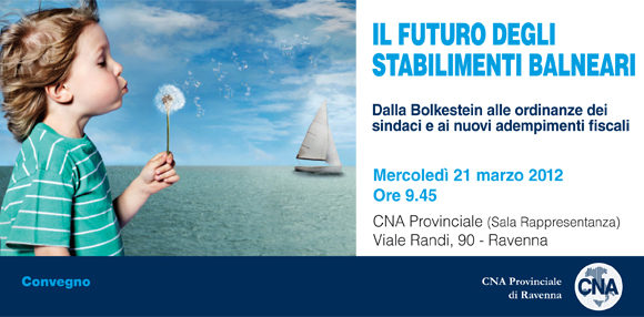 IL FUTURO DEGLI STABILIMENTI BALNEARI Mercoledì 21 Marzo 2012 ore 9:45, presso la CNA Provinciale di Ravenna (sala rappresentanza) Viale Randi, 90 – RAVENNA –
