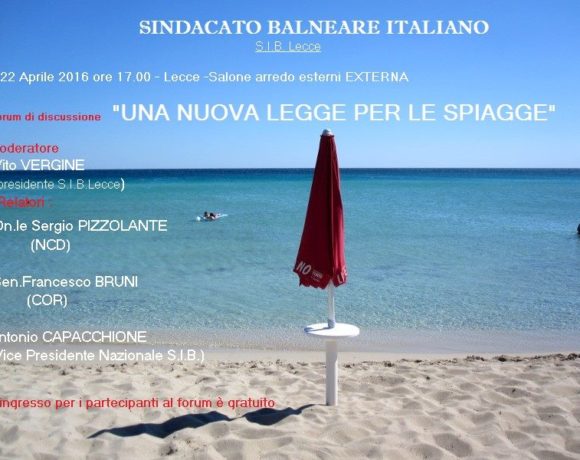 Il Sib-Confcommercio Lecce organizza il forum di discussione su “Una nuova legge per le spiagge”, in programma venerdì 22 aprile alle ore 17, al salone
