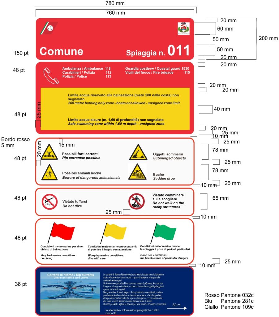 Specifiche per la progettazione dei cartelli per la sicurezza nella balneazione nelle spiagge della Basilicata