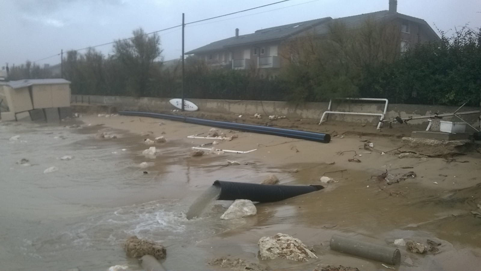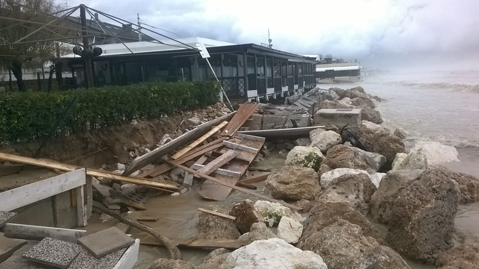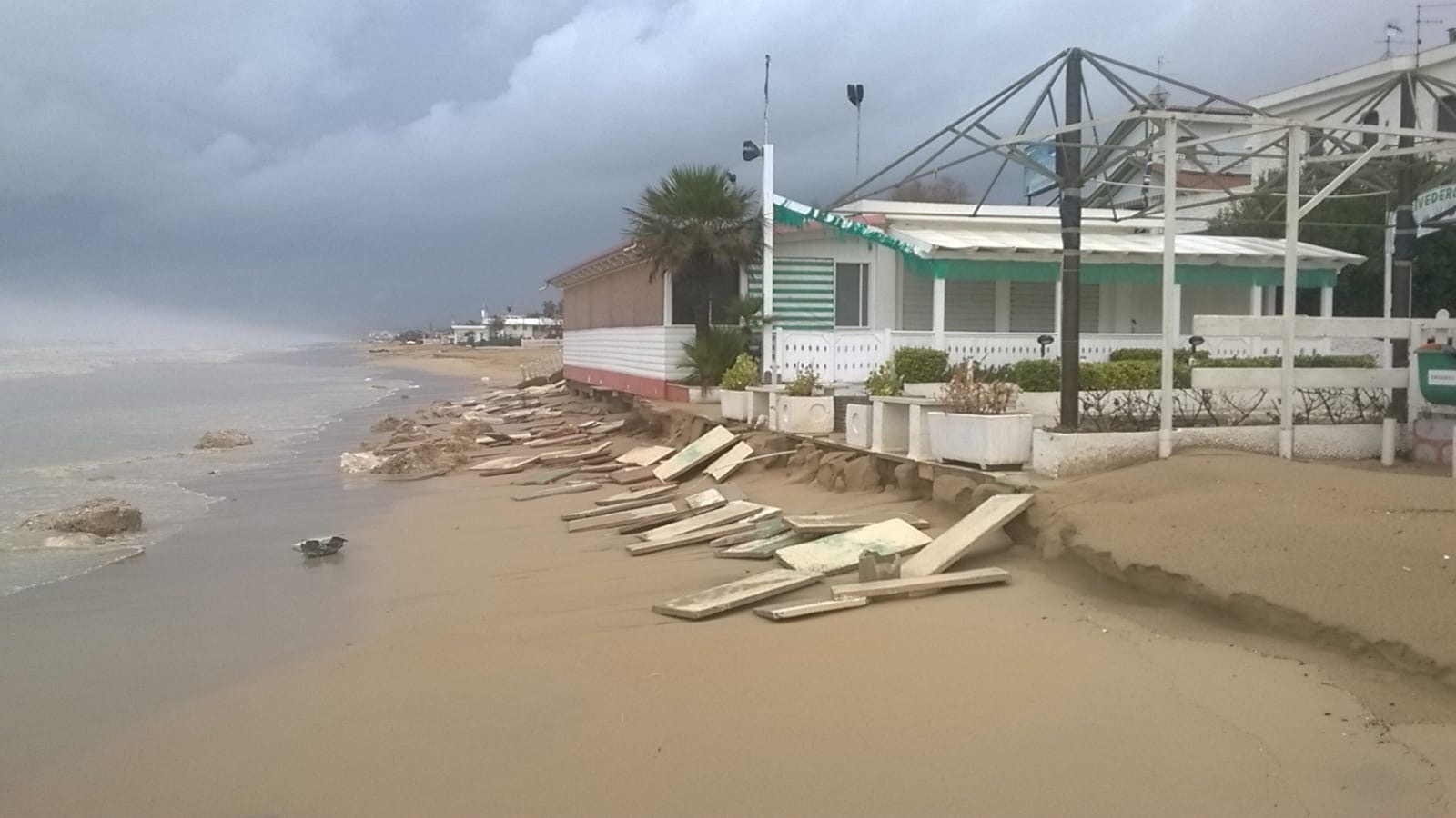La violenza del mare si è abbattuta in particolare nella zona di Francavilla, ma tutte le spiagge abruzzesi sono martoriate come se fosse avvenuto un bombardamento di guerra. Le foto che pubblichiamo qui di seguito, inviate dal Sib-Confcommercio Abruzzo, parlano da sole, e lo stesso sindacato – con il presidente regionale Riccardo Padovano – denuncia «le lungaggini burocratiche che ci impediscono di proteggere le nostre strutture con interventi a difesa della costa».