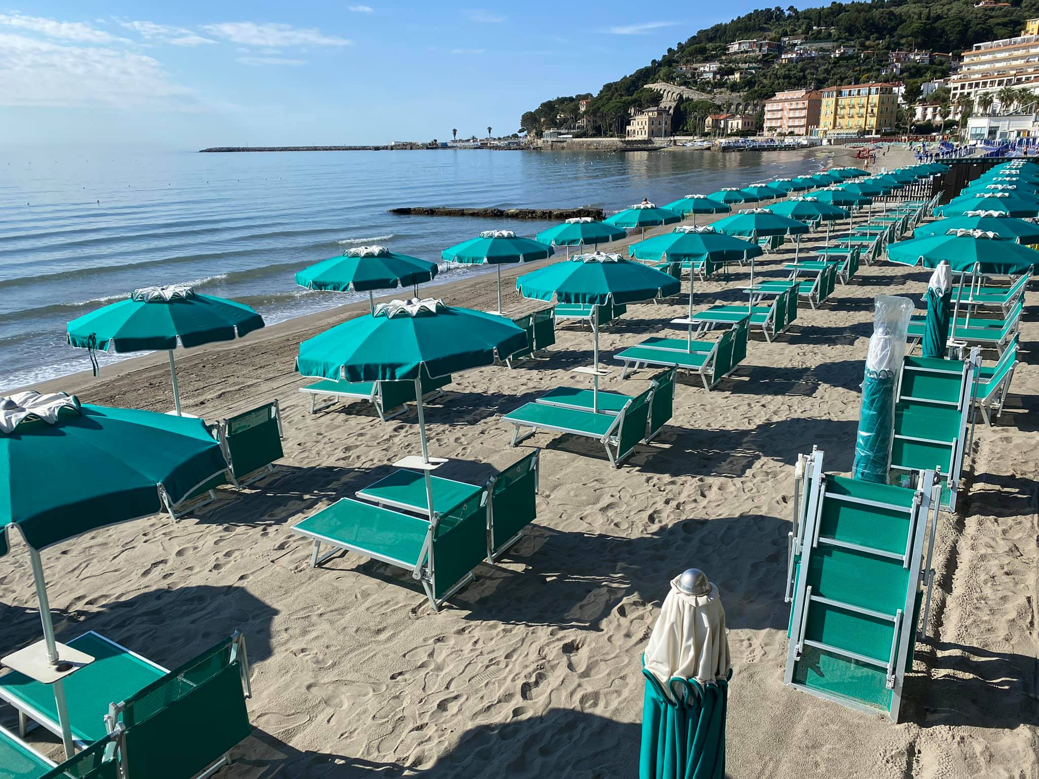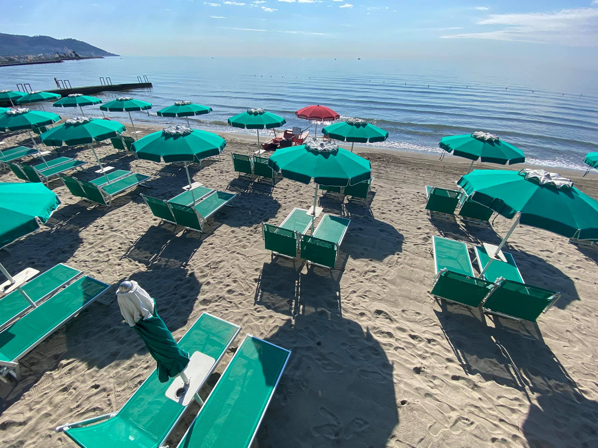 Ombrelloni, lettini, cabine e chiosco/bar con relativo dehor sul mare.