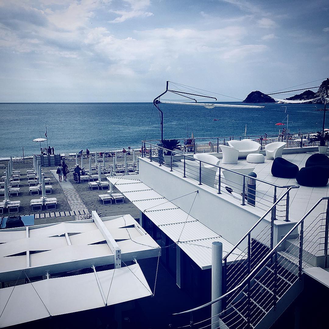 Locale moderno e accogliente con le sue grandi vetrate, offre una fantastica vista. Sabbia con sassolini minuscoli, mare pulito, trasparente, meritano ogni anno la bandiera blu. Campo da beach volley regolamentare per i più sportivi! Parco giochi per i più piccoli. Canoe per una splendida pagaiata alla grotta e all’isola di Bergeggi. Terrazza panoramica per un meritato relax. Nursery