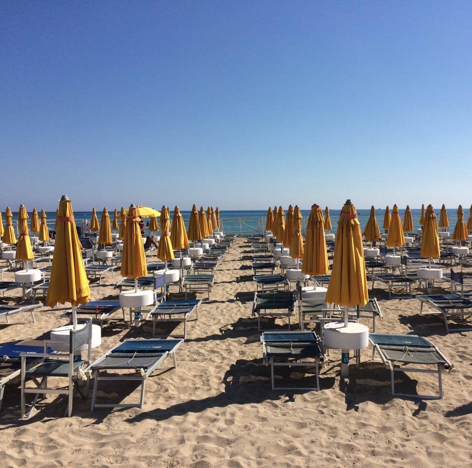 La spiaggia è ampia con più di 500 ombrelloni attrezzati di sdraio, lettini e sedie da regista.