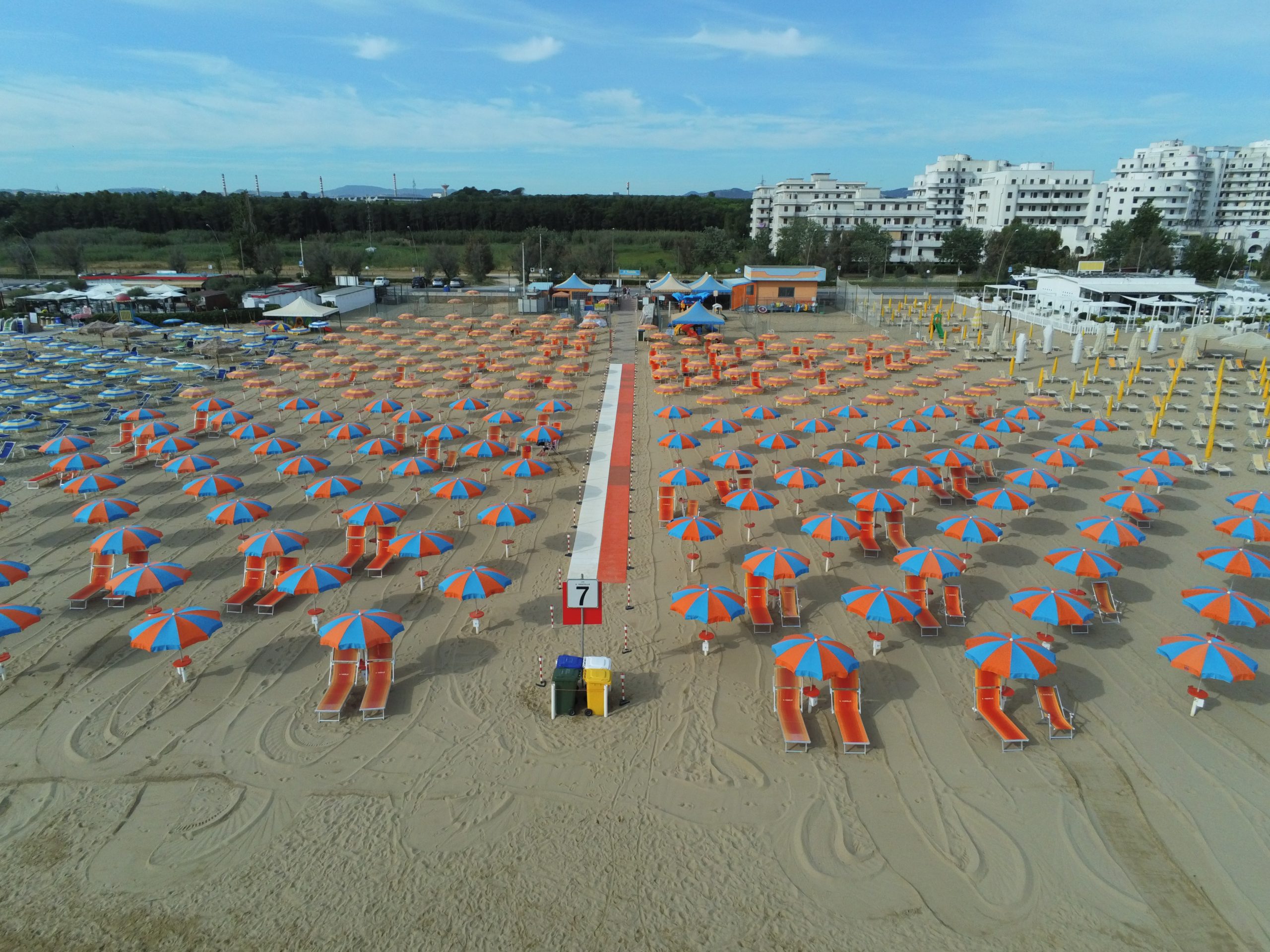 Il nostro lido propone ombrelloni molto confortevoli disposti con uno schema a scacchiera che garantisce un ottimo distanziamento, abbinabili a una molteplicità di accessori balneari a scelta del cliente e prenotabili direttamente on-line.