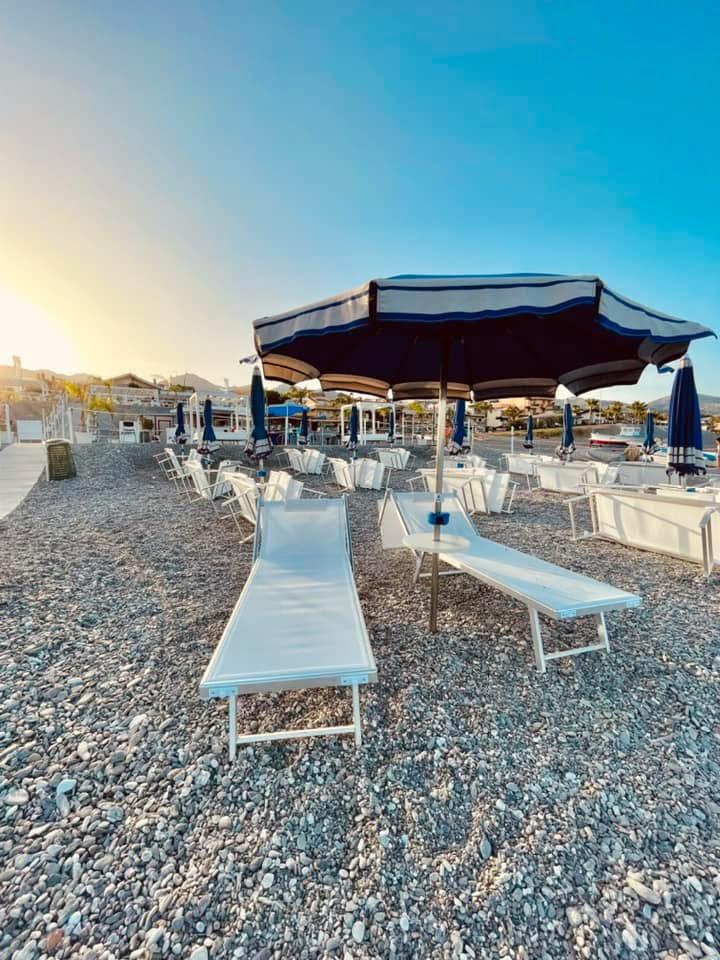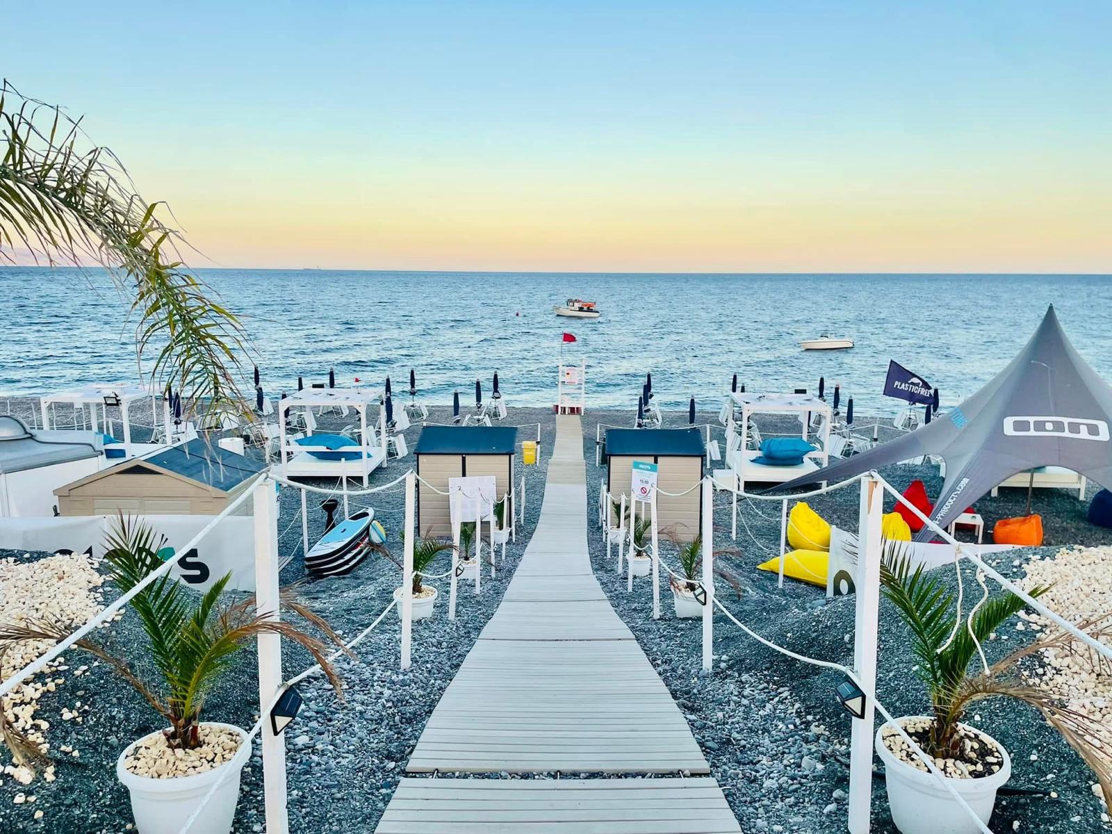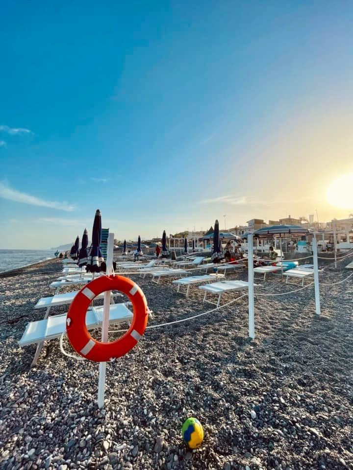 Piccolo stabilimento balneare a Roccalumera, sul versante ionico della Sicilia, bandiera blu.