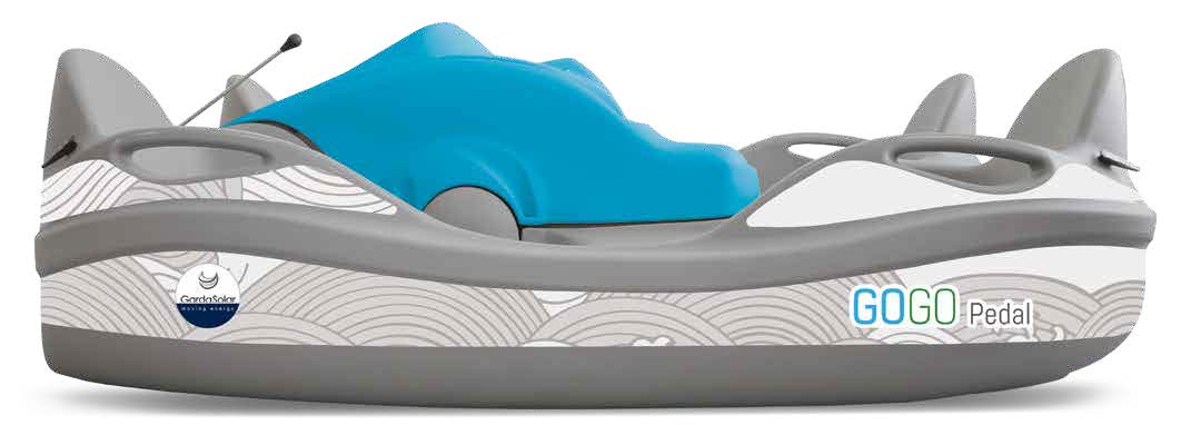 Dimenticate i pedalò standard: in GOGO Pedal-E un motore elettrico da 250 W vi aiuta nella navigazione, rendendo il vostro viaggio ancora più piacevole, come nelle moderne biciclette. Un sistema semplice e sicuro anche in spiaggia grazie alla presenza di una girante con pale. Completano la gamma il design innovativo e l’ergonomia dei sedili, confortevoli e accoglienti per 5 persone.