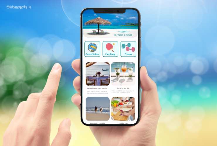 L’app per mobile di Okbeach.it, completamente personalizzata nel logo, nei colori e nei contenuti, consente di fidelizzare i clienti tenendoli sempre aggiornati su novità, iniziative ed eventi organizzati dalla struttura.