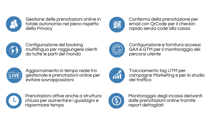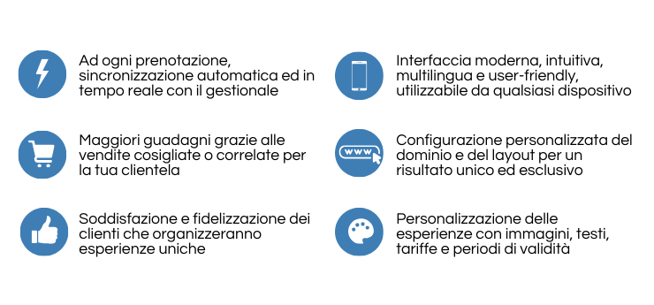 Dal wellness alle cooking class, dalle escursioni agli aperitivi a bordo piscina…l’attivazione del modulo, prevede la creazione di una lista di “esperienze” da proporre al cliente in fase di prenotazione online.