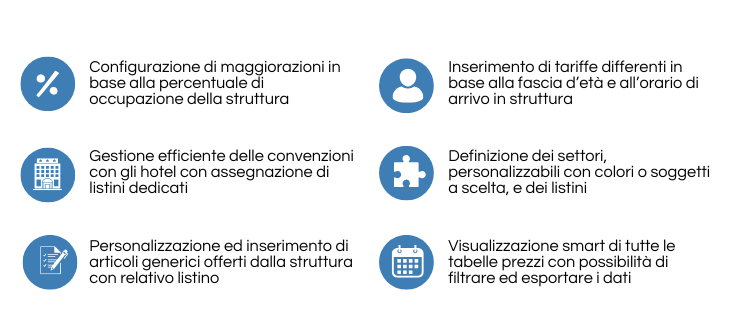 Inoltre, il listino dinamico permette di personalizzare i prezzi in base alla percentuale di occupazione della struttura e consente di scegliere dove e in quale forma applicare le maggiorazioni.