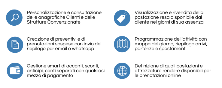 La sezione dedicata alle strategie di marketing permette di creare codici sconto con coupon da destinare alla clientela che vuole prenotare la propria postazione tramite booking online. Allo stesso modo è possibile configurare delle offerte periodiche per orientare l’acquisto della tua clientela e per garantire al gestore una struttura sempre operativa e ricca di prenotazioni.