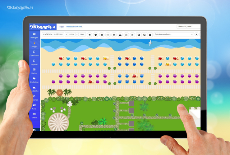 Affidabile, innovativo ed esclusivo, Okbeach.it permette di organizzare ogni dettaglio del proprio stabilimento balneare. Visibile ovunque e da qualunque dispositivo, consente di monitorare lo stato di occupazione della struttura senza perdere di vista scorte, spostamenti, condivisioni, incassi e prenotazioni online.