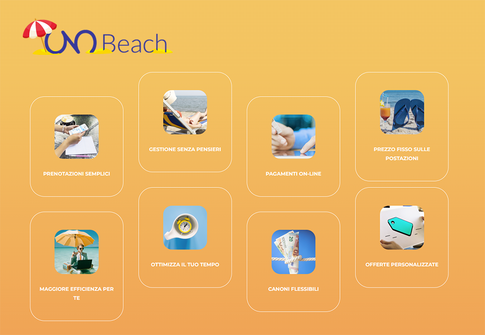 Progettato per rispondere alle esigenze specifiche del settore, UnoBeach ti offre una suite di strumenti integrati per migliorare l’efficienza e aumentare la soddisfazione del cliente.