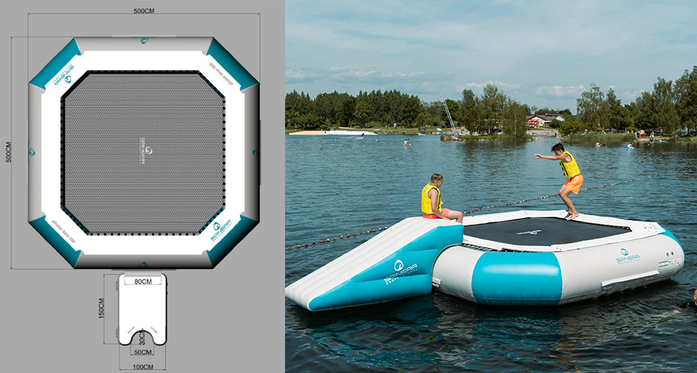 Pirate Base 500 Aquapark è un trampolino totalmente gonfiabile senza molle o complicate strutture metalliche, semplice da installare: basta gonfiarlo, ormeggiarlo in acqua alla boa ed è pronto.