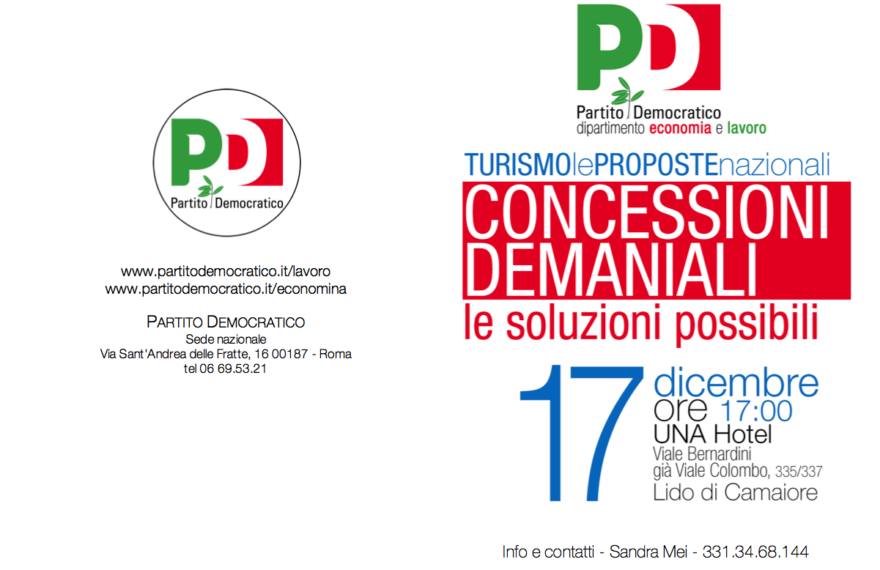 In un clima di confusione tra gli operatori balneari, ci vuole qualcuno che faccia chiarezza. A prendersi carico di questa responsabilità è stato il Partito Democratico, che per il 17 dicembre ha fissato un incontro pubblico dal titolo "Concessioni demaniali, le soluzioni possibili". L’assemblea si terrà alle ore 17 presso l’hotel