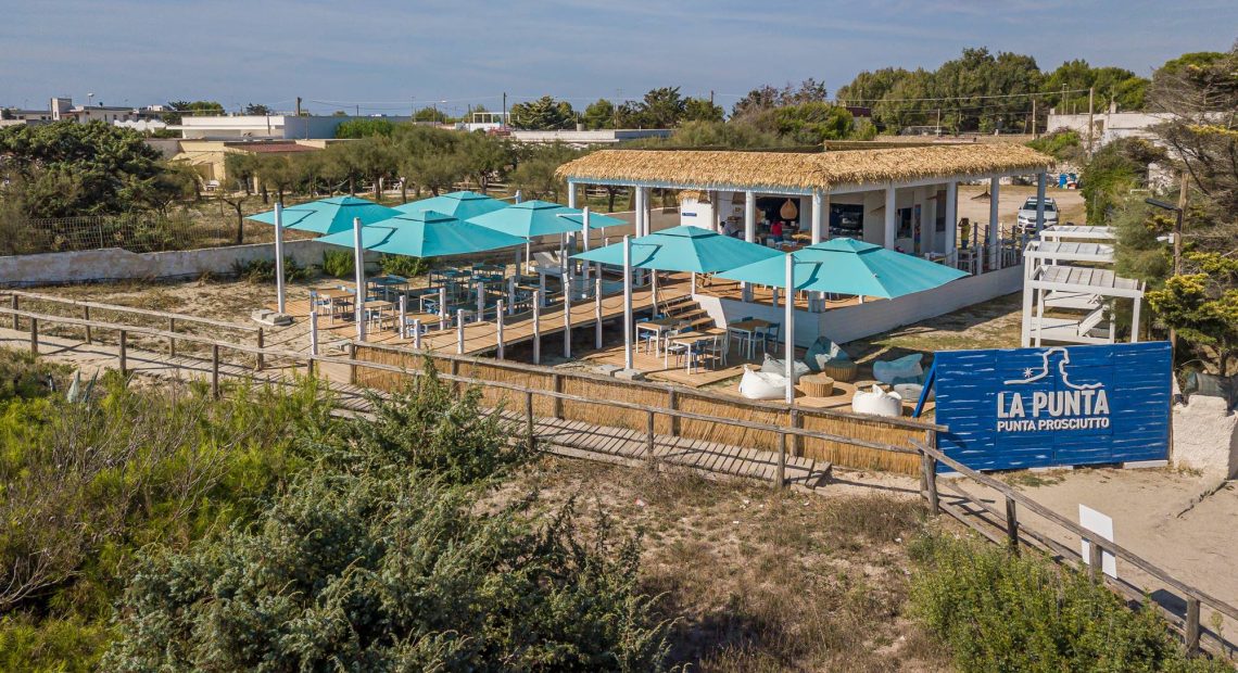All’inizio della baia di Punta Prosciutto, dove la spiaggia è di sabbia finissima e il mare è cristallino e poco profondo, tra i più belli della Puglia e d’Italia, è situato lo stabilimento balneare “La Punta”. Meta di turisti da tutto il mondo e amata dai pugliesi e salentini, Punta Prosciutto