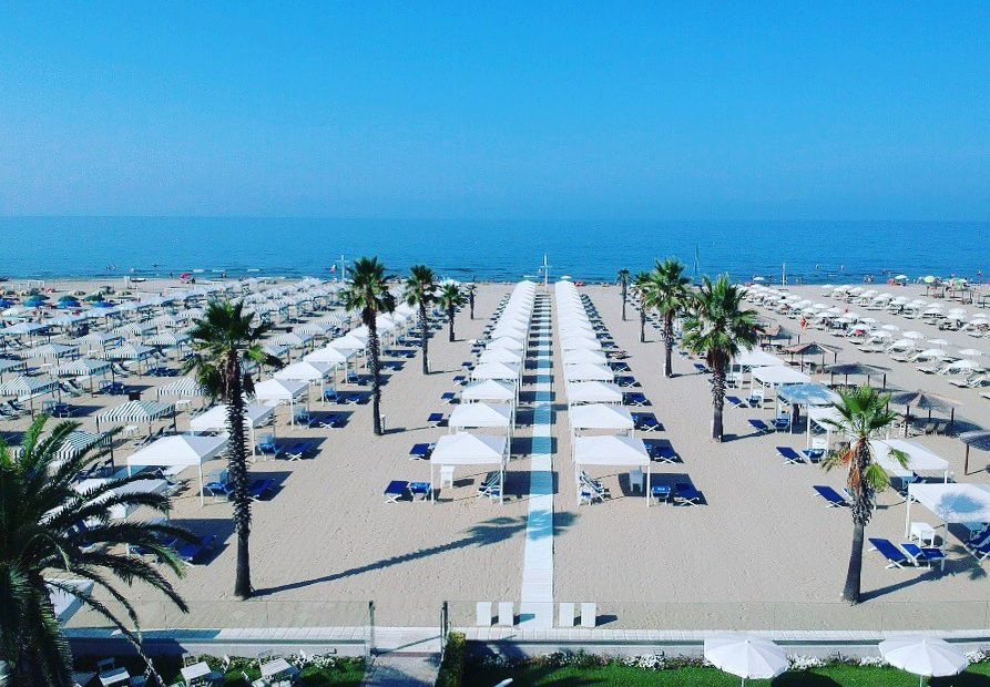 La Spiaggia del Palace Hotel è attrazzata con bar, aperto dal mattino per colazioni, snack e aperitivi, e ristorante che a pranzo propone un ricco menù a buffet. Situata di fronte all’albergo e raggiungibile senza attraversare strade, la spiaggia è dotata di ampi spazi: gli ombrelloni sono