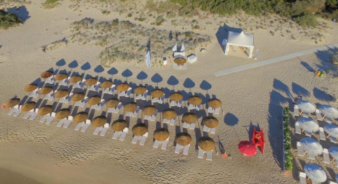 Giardini di Brandinchi è un struttura posta nel retrospiaggia della spiaggia di Cala Brandinchi, in Sardegna, ed è composta da un’area di prato verde con 60 ombrelloni di erica con due lettini ognuno e un’area sulla sabbia nell’area subito dietro la spiaggia con una trentina