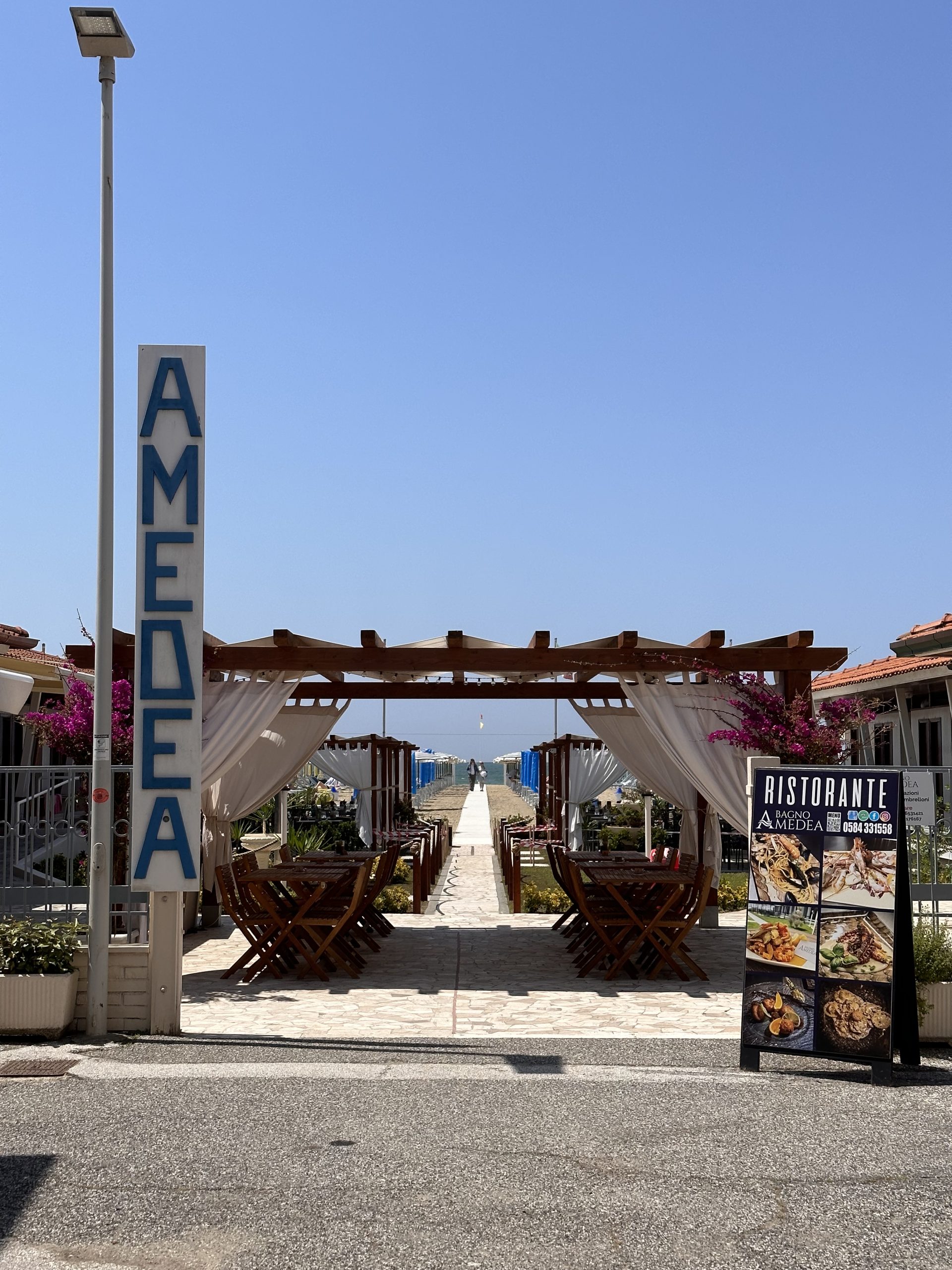 La posizione del Bagno Amedea è semplicemente invidiabile, poiché si trova sulla meravigliosa costa di Viareggio, una delle località balneari più amate della Toscana, nota per le sue spiagge dorate e le acque cristalline.
