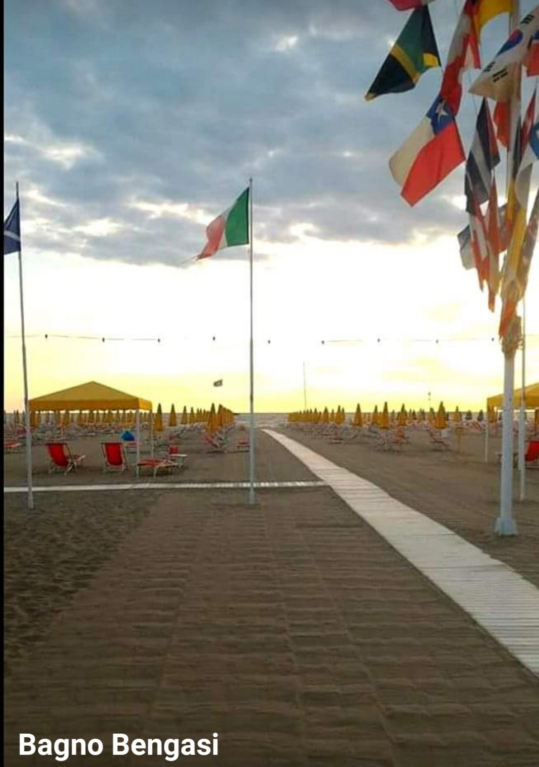 Lo stabilimento Bengasi ha una spiaggia ben attrezzata ed è fornito di 40 cabine, di 150 ombrelloni, di 6 tende di cui 4 posizionate direttamente fronte mare.