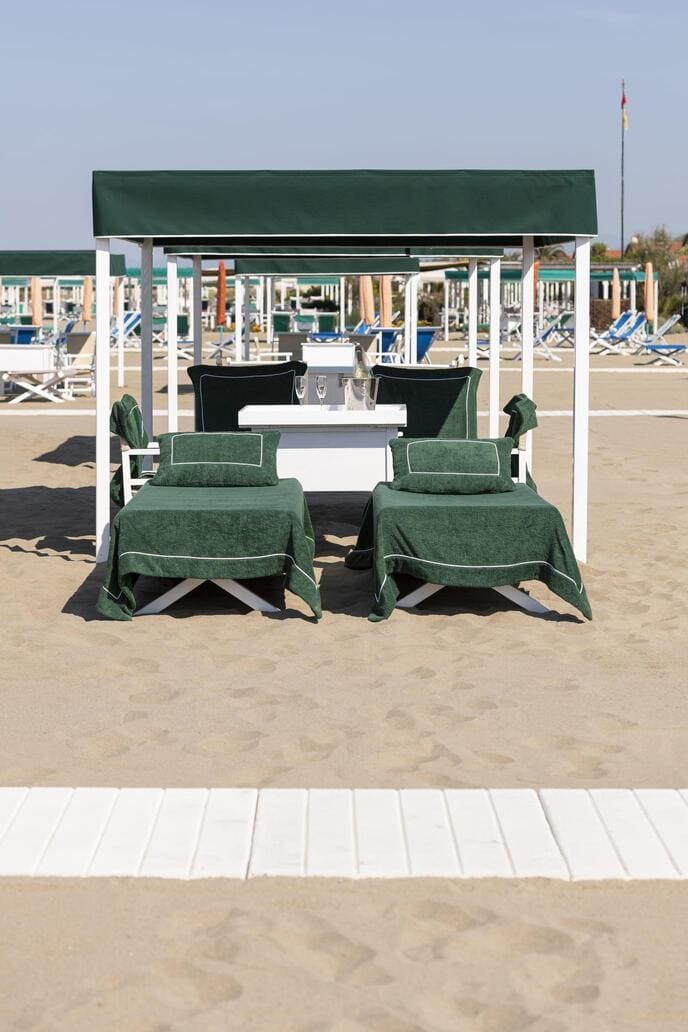 L’attenzione per l’ambiente è un altro punto di forza, evidente anche nella scelta della palette di colori che richiama lo spirito “green” dello stabilimento. Pur offrendo servizi innovativi e all’avanguardia per un’esperienza eccellente, il Bagno Pietro rimane fedele alla tradizione e alla tranquillità di Forte dei Marmi.