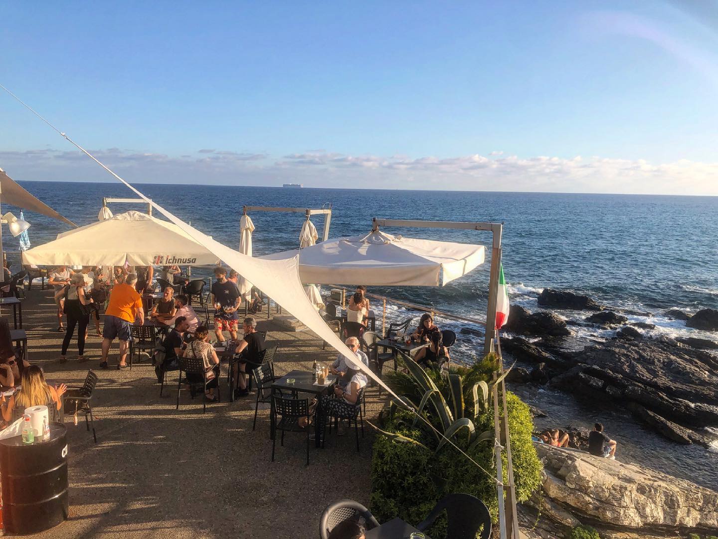 Spiaggia libera attrezzata con possibilitá di affittare lettini. L’arenile è fatto di scogli ed è possibile gustare prelibati piatti ed aperitivi al bar Monu Café.