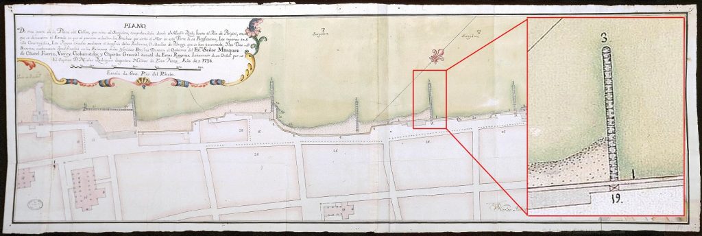 La costa di Callao (Perù) in una mappa del 1728.