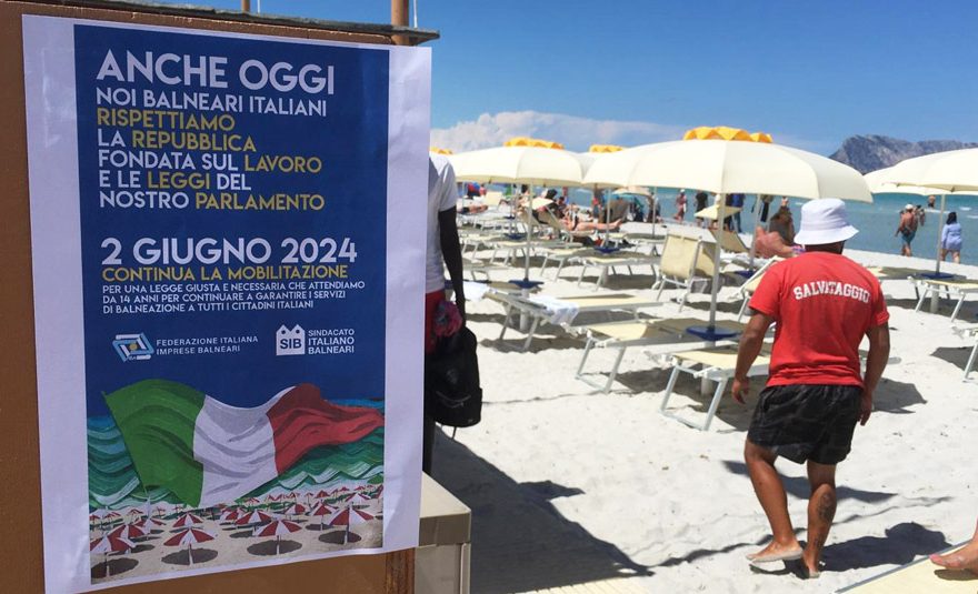 Nella giornata di ieri in tutti gli stabilimenti balneari italiani si è svolta la prima delle giornate di mobilitazione della categoria indetta da Sib-Confcommercio e Fiba-Confesercenti, le sigle sindacali maggiormente rappresentative dei balneari italiani. In ogni stabilimento balneare è stato affisso un manifesto in cui, nel celebrare la festa della Repubblica, si