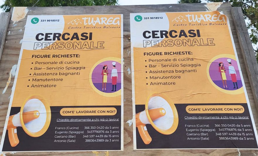 Vuoi essere certo che in questa attività i dipendenti vengono trattati bene? Puoi chiederlo direttamente a chi ci lavora già. Questo il significato del messaggio contenuto nell’originale annuncio di ricerca di personale diffuso da uno stabilimento balneare calabrese, il Tuareg Beach di Mantatoriccio, che ha messo i numeri di telefono dei suoi dipendenti per cercare
