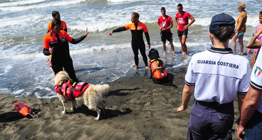 Il soggetto responsabile dell’organizzazione del servizio di salvamento è la Lifeguard che, in collaborazione con l’Associazione italiana cani da salvamento, ha organizzato lo scorso mercoledì una prova pratica di salvataggio con i cani (nella foto).