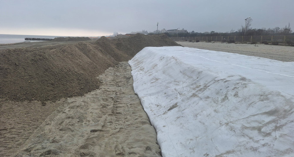 In riviera romagnola sono state innalzate due dune invernali di sabbia con una metodologia sperimentale. Gli argini non sono realizzati solo con dei cumuli di sabbia, come avviene di solito lungo la riviera adriatica, bensì sono coperti da teli geotessili di rinforzo in fibra di poliestere. Le due dune, rispettivamente di 300 e 400 metri di lunghezza, sono state innalzate a Milano Marittima (Ravenna) e Cesenatico (Forlì-Cesena) e finanziate dalla Regione Emilia-Romagna con 400 mila euro.