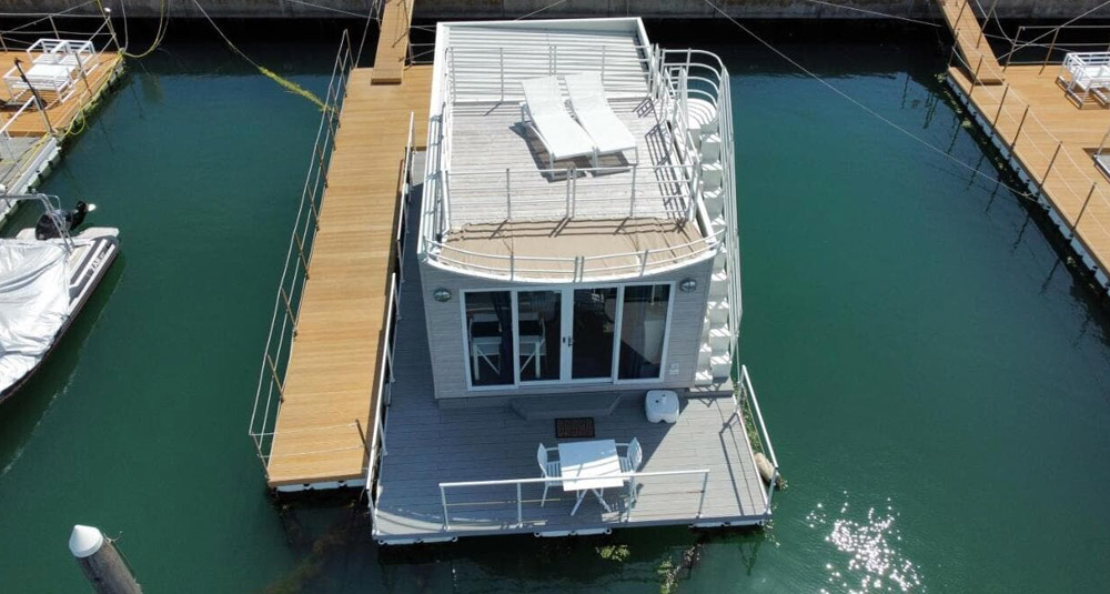 Nel “Waterdream” riminese, gli alloggi di design traggono ispirazione dalle cabine di una nave da crociera di lusso, combinando elementi premium delle case mobili più lussuose con la peculiarità di una vacanza sull’acqua. Ogni suite dispone di due camere da letto, una matrimoniale e una da tre letti singoli, cucina con angolo pranzo e zona living; mentre all’esterno, il ponte offre una lounge a cielo aperto con una scaletta che porta alla vera chicca dell’imbarcazione, ovvero il rooftop terrace con lettini prendisole per vivere in relax la luce del tramonto, le mattine in pieno sole o le notti sotto le stelle, cullati dal ritmo dell’acqua.